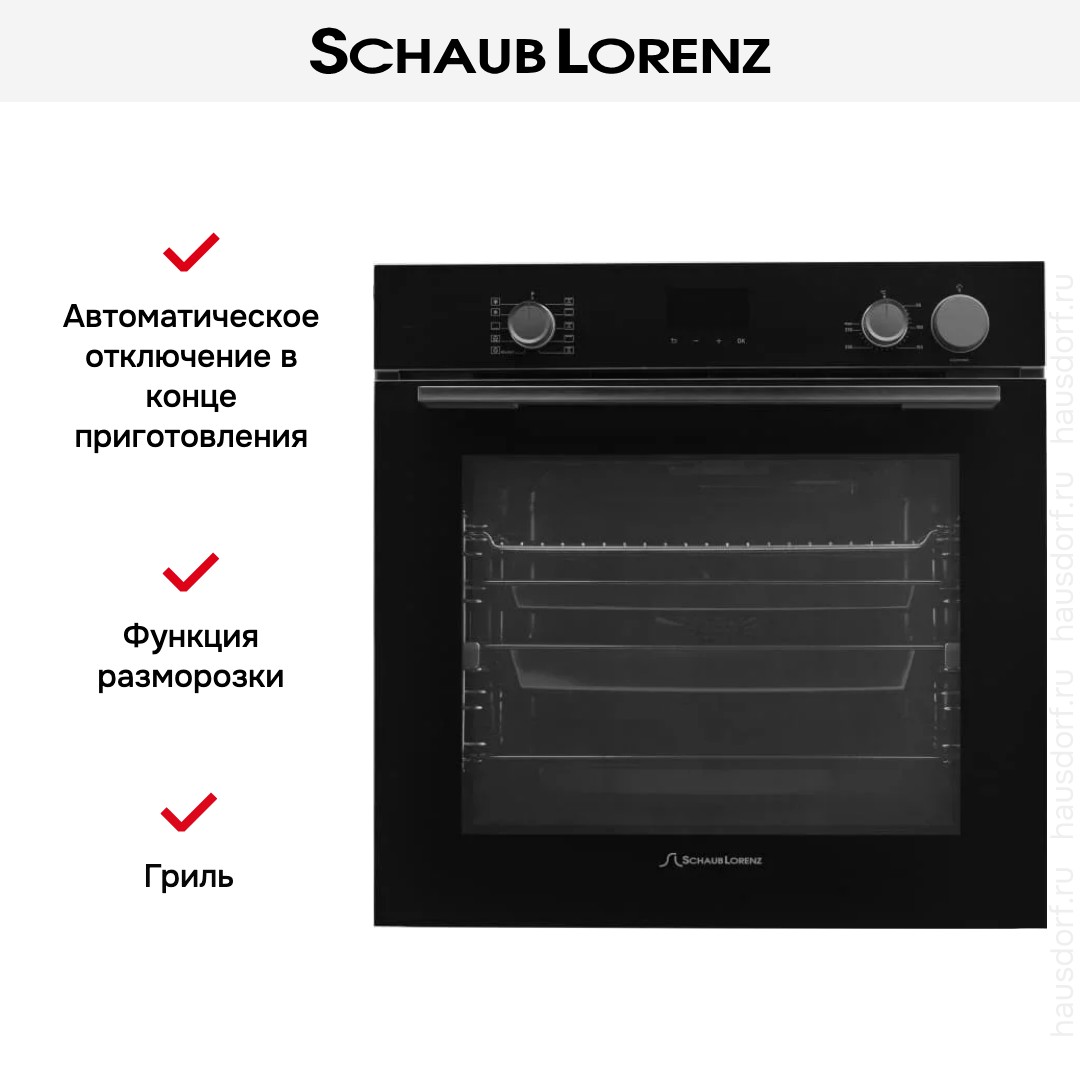 Количество режимов работы в духовом шкафу Шауб Лоренц: 10. В число доступных программ входят: классический нагрев, нижний нагрев, конвекция, гриль для создания хрустящей корочки, пицца, и другие. Помимо основных программ воспользуйтесь специальными возможностями этого прибора: размораживанием продуктов, чтобы сократить время на подготовку; вентилятором, совмещенным с грилем; и другими. Тип гриля в этой модели — электрический.