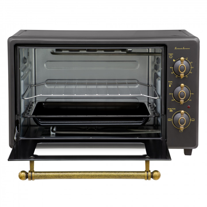 Навесной способ открытия преобладает у настольных моделей: петли в этом случае располагаются слева или справа, а дверца открывается за ручку, расположенную с другой стороны, — так же, как у микроволновки или холодильника. Оригинальна и безопасна выдвижная дверца у электрических духовок — к ней с внутренней стороны прикрепляются все комплектующие, включая противни и направляющие. При выдвижении все они также извлекаются наружу, понижая тем самым риск ожога. Недостаток этого способа — постоянное изменение температуры при каждом открытии дверцы.