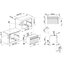 С духовыми шкафами с функцией СВЧ могут поставляться стеклянные поворотные столы и круглые стеклянные формы для приготовления блюд. Духовки с системой парообразования могут комплектоваться особыми паровыми противнями с перфорацией, специальными подставками, резервуарами и воронками для воды, трубками подачи пара, закрытыми формами с отверстием для трубки.