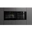 Полноразмерная модель может устанавливаться в нишу или колонну с другой бытовой техникой благодаря ширине и высоте 60 см. Дизайнерский фасад выполнен из зеркального стекла Platinum. Внутренняя поверхность камеры покрыта очень гладкой эмалью BrillantEmaille, к которой почти не пристают загрязнения. Для полной очистки камеры можно воспользоваться пиролизом.