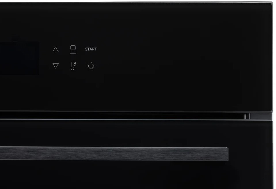Особенности дизайна и внешней панели управления — также важный пункт при выборе духовки на кухню. В данной модели нужно обратить внимание на цвет — черный,