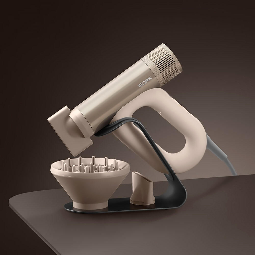 Стильный и мощный фен Bork в корпусе цвета шампань с необычной изогнутой ручкой, которая снижает нагрузку на руку. 3 температурных режима и 3 скорости позволяют быстро и бережно высушить волосы любой структуры и сделать стойкую укладку. Благодаря нескольким насадкам можно сделать поток воздуха концентрированным или рассеянным.