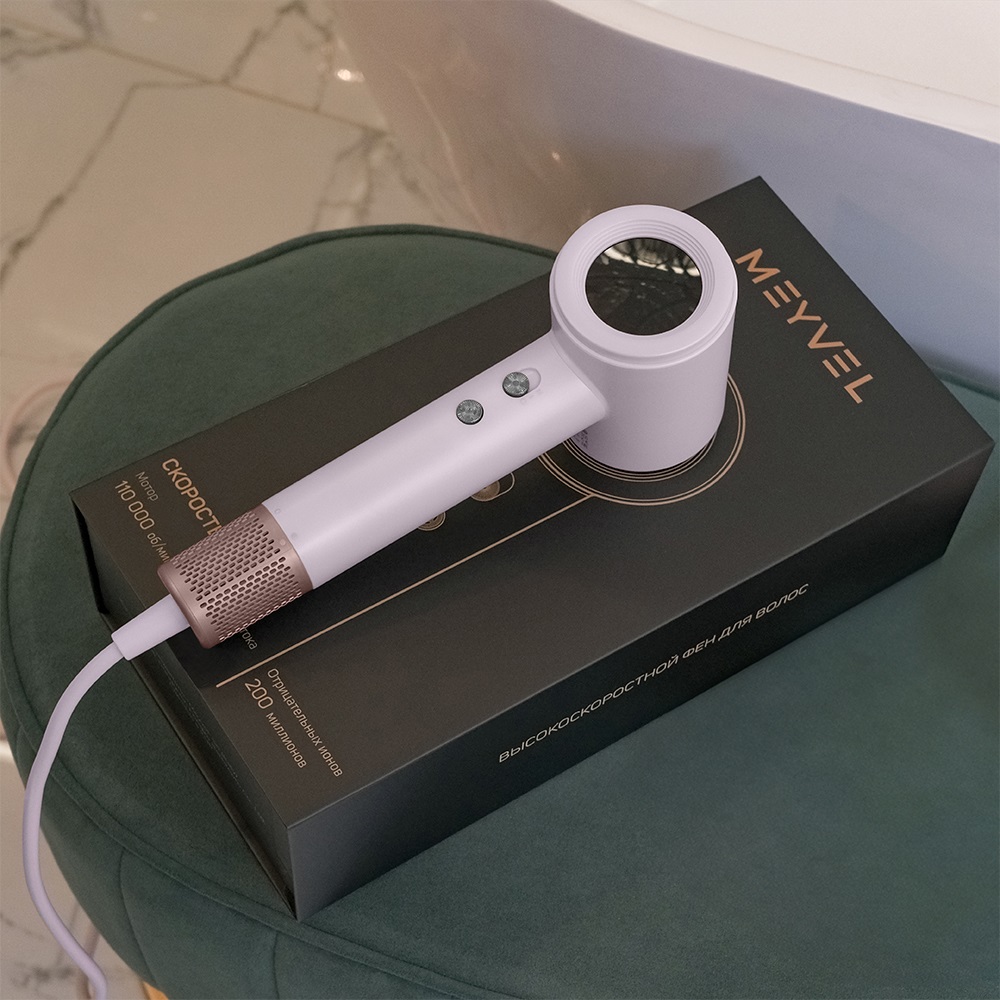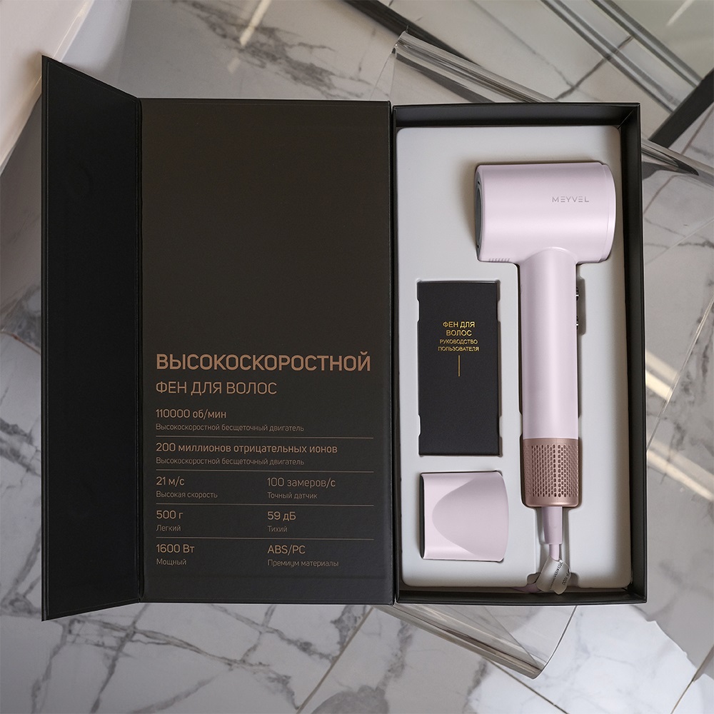 Нежно-розовый фен Meyvel — стильное решение для дома, гостиниц и отелей. Мощность 1600 Вт, два температурных режима (55 °C и 85 °C), функция холодного обдува и ионизация обеспечивают бережную и эффективную сушку всех типов волос. Устройство оснащено микротермическим датчиком защиты от перегрева, съемной магнитной насадкой и фильтром из нержавеющей стали. Уровень шума — менее 60 дБ.