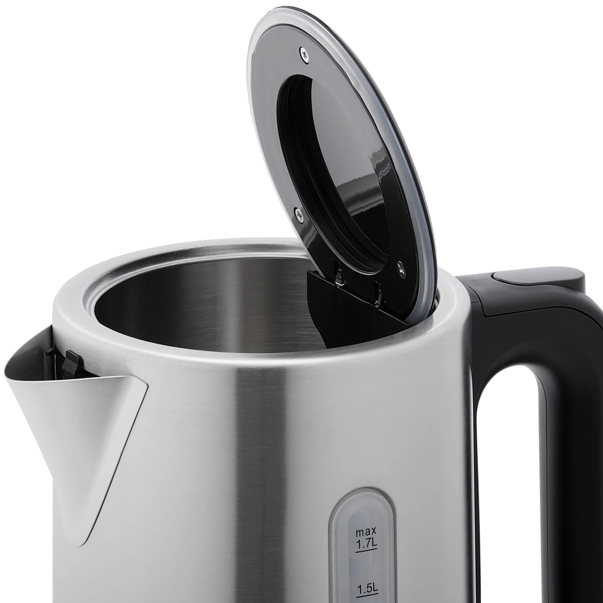Материал корпуса: нержавеющая сталь. Материал подставки: пластик. Объем (л): 1.7. Цвет: нержавеющая сталь. Мощность (Вт): 2200. Управление: механическое.