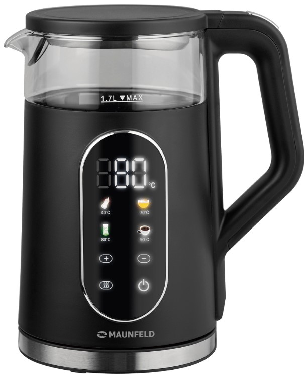 Материал корпуса: пластик/стекло. Объем (л): 1.7. Цвет: черный. Мощность (Вт): 2200. Управление: электронное.