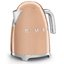 Чайник Smeg KLF03RGEU представлен в металлическом корпусе цвета розового золота. Эта элегантная модель гармонично впишется в оформление кухни, выполненное в любом актуальном на сегодняшний день стиле, а также подойдет для интерьеров, выдержанных в более традиционном направлении.
