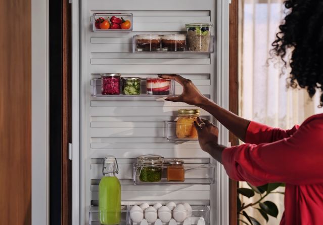 Встраиваемые холодильники монтируются в нишу или колонну. Передняя их часть закрывается декоративным мебельным фасадом и снаружи не отличается от дверцы обычного кухонного шкафа, так что их не нужно подбирать под интерьер помещения. Объем этих холодильников, как правило, несколько меньше, чем у отдельностоящих, так как при встраивании необходимо оставлять свободное пространство для вентиляции. Они отличаются меньшим уровнем шума, а также лучше держат холод и отличаются большей экономичностью из-за дополнительного слоя изоляции. Ассортимент этих холодильников не так велик, как у отдельно стоящих, установка более трудоемкая, а стоимость обычно несколько выше.