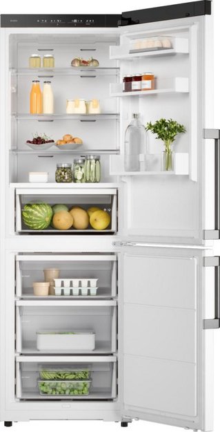 Данная модель — отдельностоящая, поэтому нужно тщательно подобрать место для ее размещения. Вы можете поменять направление открывания двери, так как упор переставляемый и ее можно перевесить на другую сторону. Такая функция открывает больше возможностей для установки. Холодильник с морозильником обладает всеми опциями, которые чаще всего ищут и выбирают покупатели. Стандартная конфигурация — универсальный вариант для любой квартиры. Количество камер: 2.