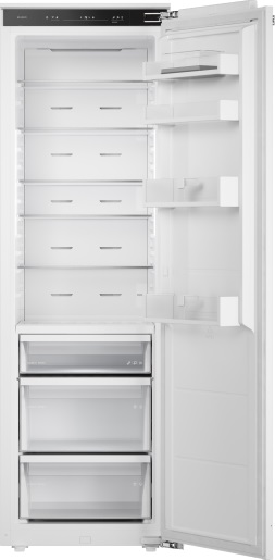 Встраиваемый холодильник ASKO RBR276DND1 представлен как решительный шаг к идеальному сочетанию эстетики и функциональности для современной кухни: строгие пропорции размера 177.2×55.7×54.5 см и возможность скрытой установки в нишу 177.5—178×56—57×56 см делают корпус практически невидимым, сохраняя при этом внушительный общий объем 312 литров и полезное пространство 245 литров для аккуратного размещения продуктов. Внешний вид серии 2 выдержан в минималистичном ключе, рассчитан на монтаж «под навес вашего фасада» с системой door on door и жестким креплением, что обеспечивает аккуратную интеграцию без видимых зазоров; дверь с правым упором можно переставить при необходимости, оставляя ровную линию гарнитура. Внутри продуманная организация хранения включает пять прочных стеклянных полок, четыре держателя на двери, специальную полку для бутылок, лоток для яиц и зону свежести Nordic Fresh с тремя контейнерами и двумя температурными зонами — идеальное решение для овощей, мяса и рыбы с контролем уровня влажности. Электронное управление реализовано через сенсорные кнопки и яркий LED-дисплей, дополнено приложением ConnectLife.TRIR для удаленного мониторинга, а адаптивный температурный контроль и функция суперохлаждения обеспечивают стабильный микроклимат даже при частых открываниях; циркуляционная система охладителя на базе инверторного компрессора с холодоагентом R600A работает тихо (35 дБ) и экономично, что подтверждается классом энергопотребления A++ и годовым расходом всего 107 кВт·ч. Для удобства эксплуатации предусмотрены телескопические направляющие, ручная разморозка камеры и мягкая светодиодная подсветка, которая равномерно освещает внутреннее пространство, упрощая поиск нужных продуктов. Гибкость настроек видна в наличии ночного и специализированного режимов: режим Шаббат, режим Вечеринка и режим очистки, которые упрощают обслуживание и адаптацию к различным сценариям использования. Антибактериальное покрытие защищает поверхности от микробного роста, а вентиляция и контроль влажности поддерживают свежесть овощей и фруктов дольше. Технические параметры дополнены удобными показателями для установки и обслуживания: длина шнура 3 метра, напряжение 220-240 В, частота 50-60 Гц, мощность подключения 235 Вт и предохранитель 1.3 А; компактная упаковка 185×60.5×59 см облегчает доставку, а вес нетто 75 кг говорит о серьезной и надежной конструкции. Такой набор характеристик позволяет говорить о приборе как о профессиональном решении для тех, кто ценит скрытую эстетику, экономию ресурсов и продвинутые режимы сохранения продуктов — холодильник отлично подойдет тем, кто хочет интегрировать бытовую технику в единый интерьерный стиль без компромиссов по качеству хранения и удобству управления. ASKO