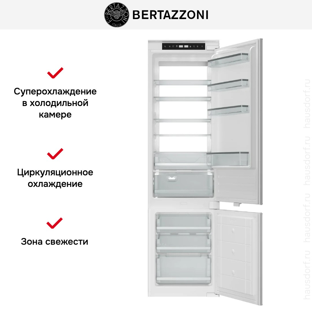 Встраиваемый холодильник Bertazzoni REF604BBNPTC — элегантное и вместительное решение для современной кухни, сочетающее итальянское качество, продуманную эргономику и безупречную интеграцию в интерьер. Модель представляет собой двухкамерный агрегат с нижним размещением морозильного отделения — рациональная конфигурация, при которой наиболее часто используемые продукты хранятся на уровне глаз, обеспечивая удобный доступ без необходимости наклоняться.