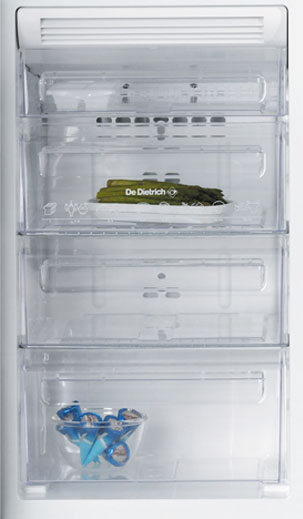 Холодильная система Side-by-Side De Dietrich PSS 300 снабжена детекторами температуры. А морозильная камера просигнализирует о возможных ошибках звуковым и световым сообщением.