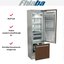 Прибор в этом случае помещается в колонну, шкаф или нишу, а на корпус этого шкафа или колонны крепится отдельная дверца на собственных петлях. Затем это дверца и дверь холодильника соединяются между собой при помощи специальных скользящих полозьев, или слайдеров. При открывания наружной дверцы внутренняя скользит вдоль нее на этих направляющих, так что происходит смещение их друг относительно друга. Дверца при этом открывается на угол не более 90 градусов.