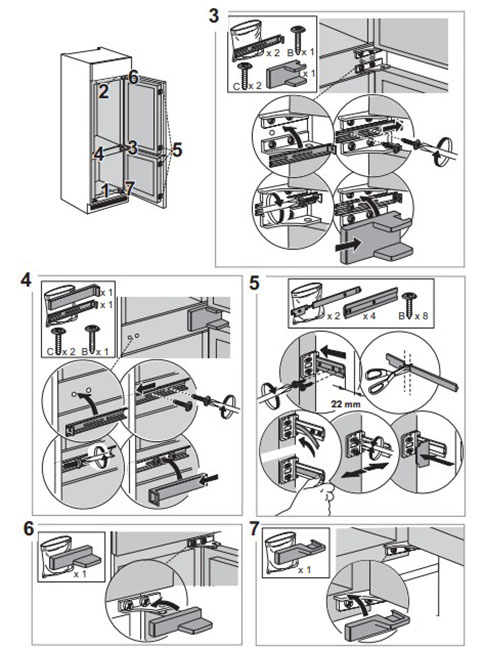 Встраиваемый прибор проще разместить в комнате, даже если общий метраж не такой уж большой. Вы можете спрятать его за декоративной панелью от мебельного фасада — советуем заранее определить нишу и заказывать панели исходя из типа крепления к двери. Способ монтажа в данной модели: скользящее крепление двери (система door sliding) Вы можете поменять направление открывания двери, так как упор переставляемый и ее можно перевесить на другую сторону. Такая функция открывает больше возможностей для установки. Холодильник с морозильником обладает всеми опциями, которые чаще всего ищут и выбирают покупатели. Стандартная конфигурация — универсальный вариант для любой квартиры. Количество камер: 2.