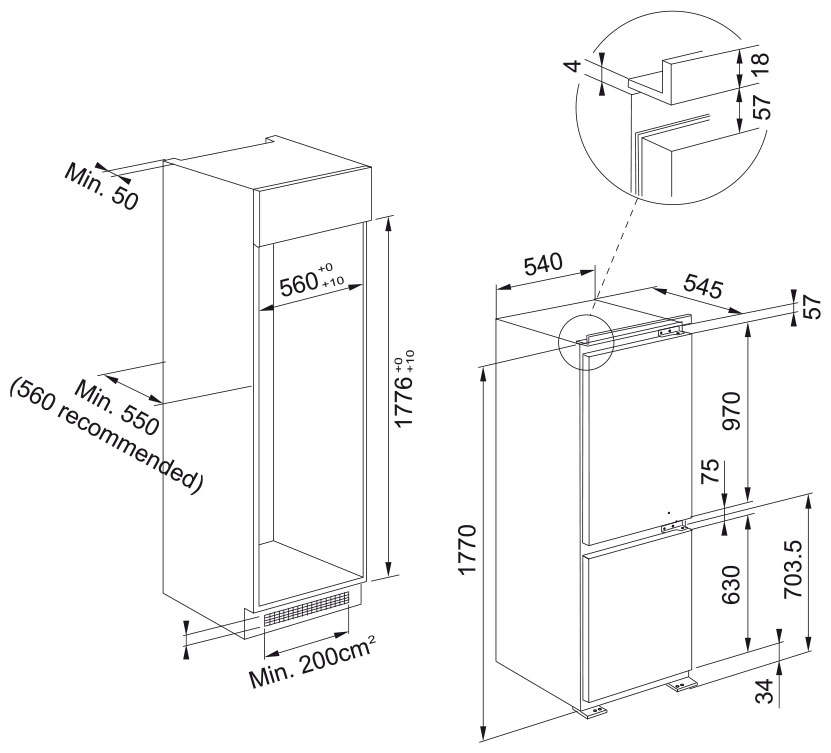 При всем сходстве с обычными отдельностоящими холодильниками частично встраиваемые модели имеют свои конструктивные особенности. Они связаны прежде всего с тем, что при встраивании необходимо обеспечить вентиляцию задней и боковых стенок, а также снизить уровень шума и вибраций. Как правило, проблема решается при помощи специальной системы вентиляции, когда вентиляционные решетки располагаются в нижней части корпуса холодильника.