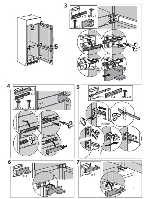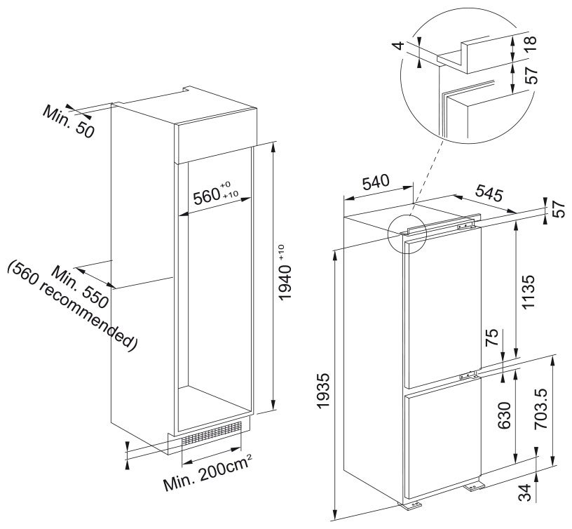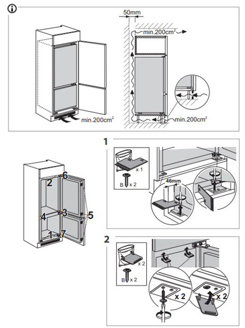 Встраиваемый прибор проще разместить в комнате, даже если общий метраж не такой уж большой. Вы можете спрятать его за декоративной панелью от мебельного фасада — советуем заранее определить нишу и заказывать панели исходя из типа крепления к двери. Способ монтажа в данной модели: скользящее крепление двери (система door sliding) Благодаря внушительным размерам, в частности высоте, она подходит большим пространствам — просторной кухне, еврогостиной. Вы можете поменять направление открывания двери, так как упор переставляемый и ее можно перевесить на другую сторону. Такая функция открывает больше возможностей для установки. Холодильник с морозильником обладает всеми опциями, которые чаще всего ищут и выбирают покупатели. Стандартная конфигурация — универсальный вариант для любой квартиры. Количество камер: 2.