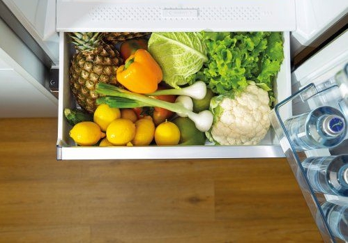 Вместительные контейнеры позволяют хранить достаточное количество овощей и фруктов. Для более длительного хранения и поддержания свежести овощей и фруктов разработаны специальные системы хранения. Среди них, например, зона свежести с увеличенной влажностью до 85% и температурой около 0 градусов. Это герметично закрывающийся ящик, часто на выдвижных роликах или направляющих, в котором имеется специальное задвижка, позволяющая регулировать влажность. Как известно, при более высокой влажности продукты с большим содержанием воды дольше остаются свежими.