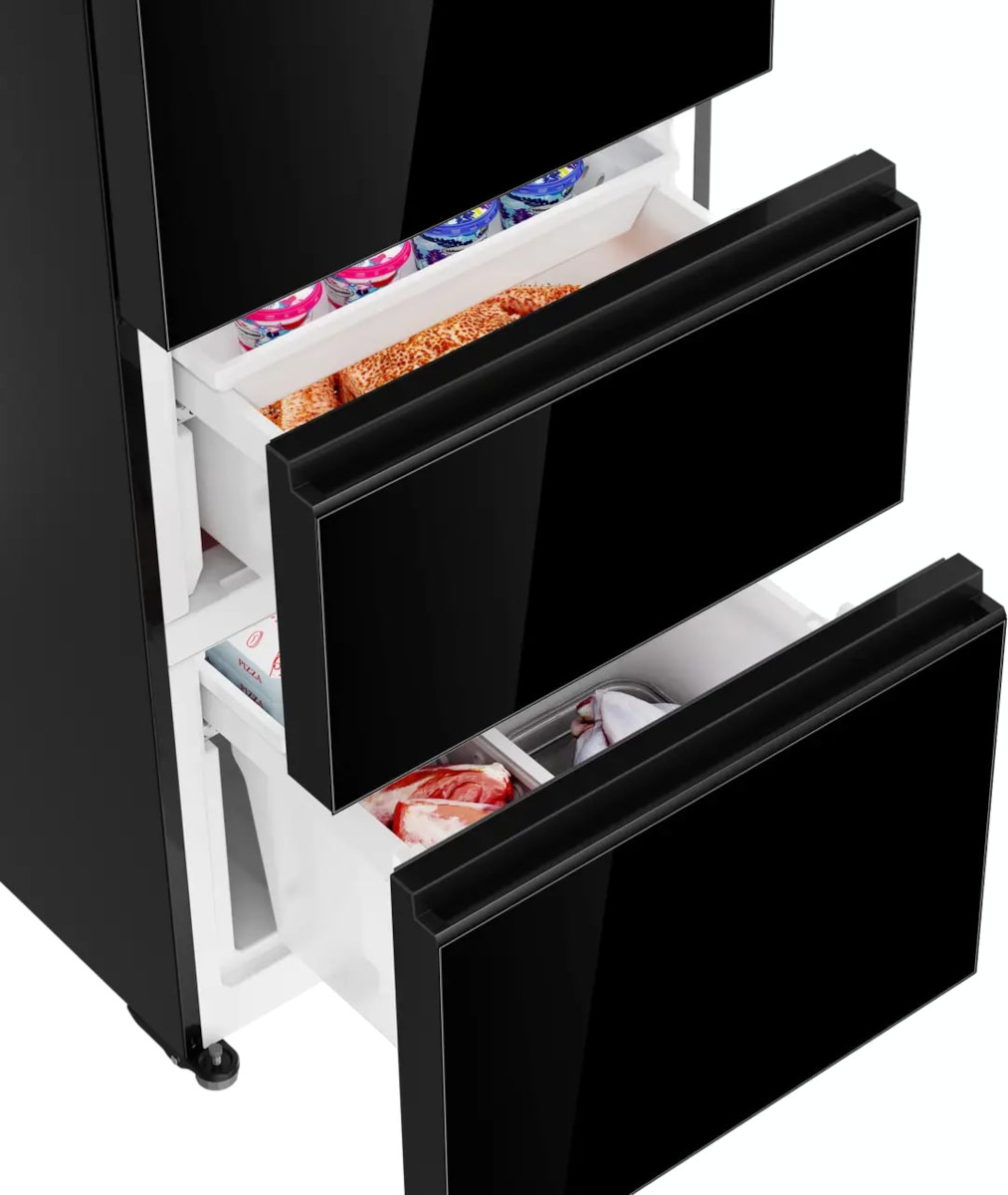 Трехкамерные модели выпускаются в нескольких вариантах. В некоторых случаях в качестве третьей камеры поступает так называемая зона свежести — отделение, где поддерживается температура около 0 градусов. В другом варианте подобные модели имеют морозильную камеру, состоящую из двух выдвижных ящиков.