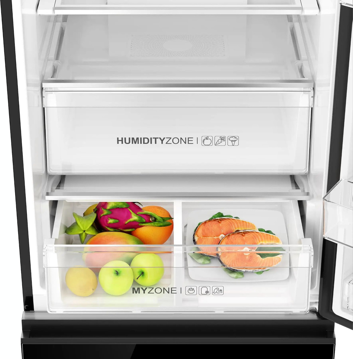 Так, для хранения овощей, фруктов, зелени необходима увеличенная влажность около 90-95%. Для хранения рыбы, мяса, сыров необходимо, чтобы уровень влажности был понижен: в таком отделении он может составлять около 50-55%, а температура может снижаться до −1 градуса. Нулевая камера может иметь собственную подсветку и систему размораживания.