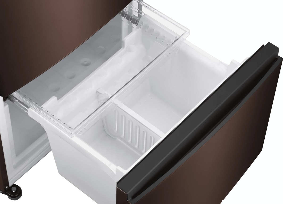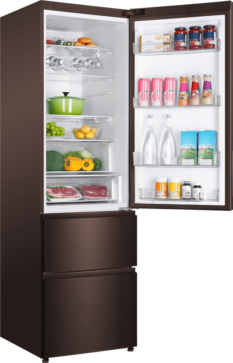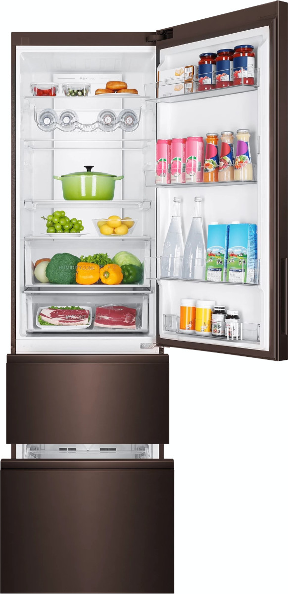 Трехкамерные модели выпускаются в нескольких вариантах. В некоторых случаях в качестве третьей камеры поступает так называемая зона свежести — отделение, где поддерживается температура около 0 градусов. В другом варианте подобные модели имеют морозильную камеру, состоящую из двух выдвижных ящиков.