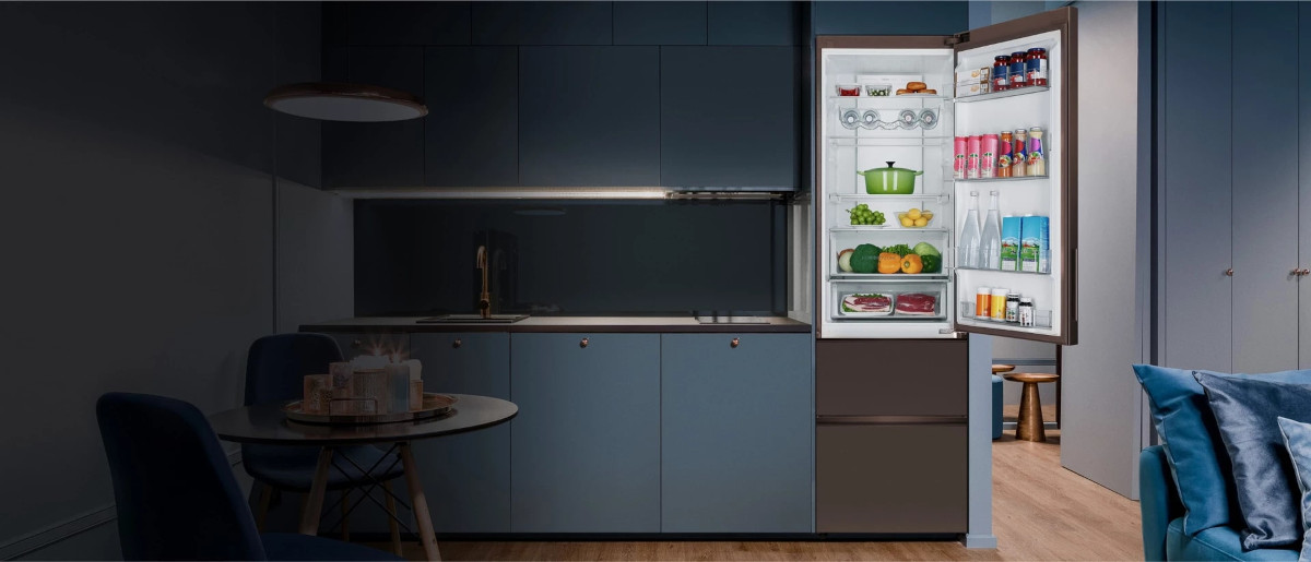 Эффектный внешний вид имеют холодильники с фасадом из закаленного стекла с защитой от отпечатков пальцев. Стеклянные фасады позволяют зрительно раздвинуть пространство и подходят к любому стилю интерьера.