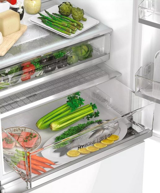 Так, для хранения овощей, фруктов, зелени необходима увеличенная влажность около 90-95%. Для хранения рыбы, мяса, сыров необходимо, чтобы уровень влажности был понижен: в таком отделении он может составлять около 50-55%, а температура может снижаться до −1 градуса. Нулевая камера может иметь собственную подсветку и систему размораживания.