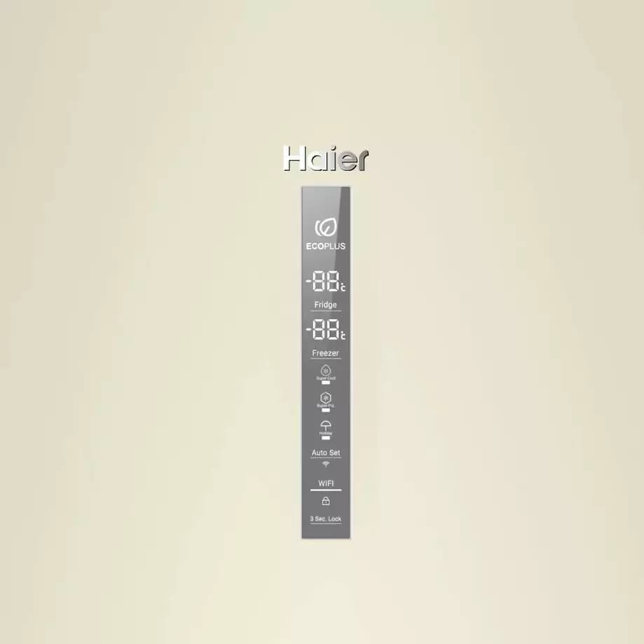 Особенности дизайна также помогут вам остановить свой выбор на этой модели Хайер. Цвет корпуса: бежевый. Благодаря электронной системе управления легко регулировать и контролировать температуру.