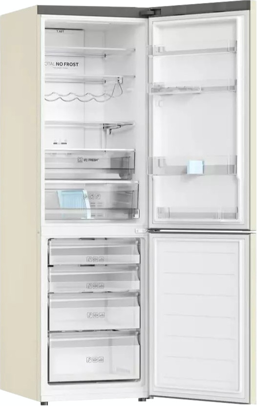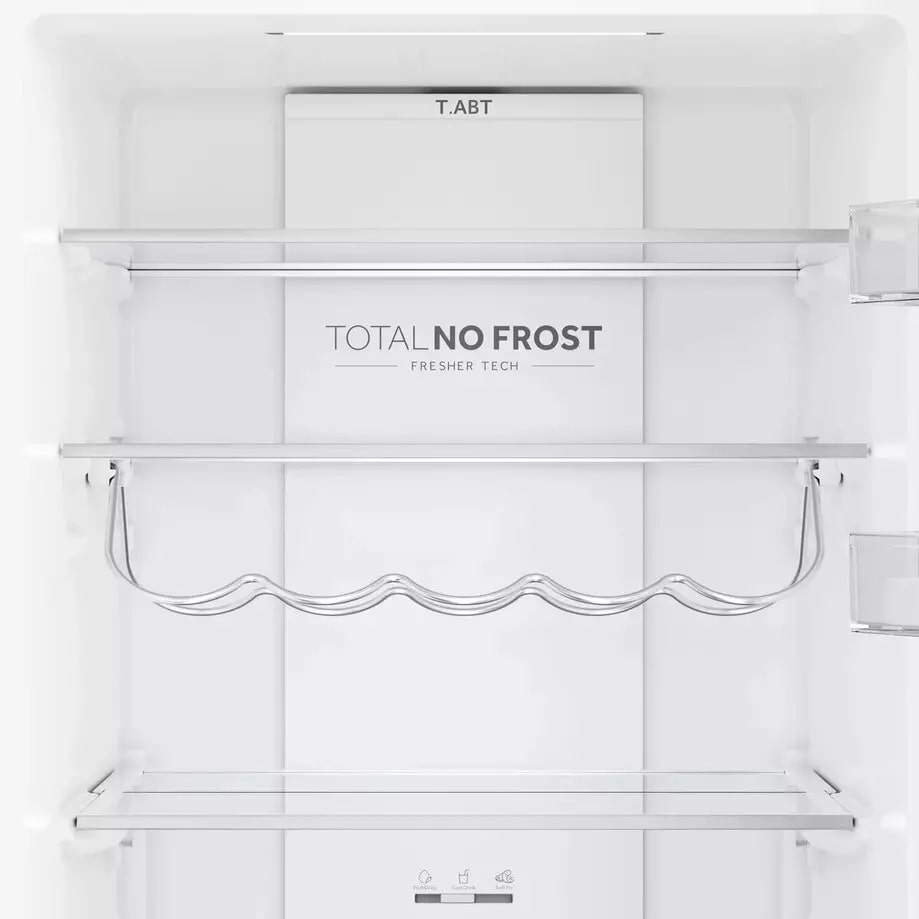 No Frost (Total No Frost, Frost Free): вентилятор обеспечивает циркуляцию охлажденного воздуха, благодаря чему лед не нарастает на стенке, а концентрируется только на скрытом внутри холодильника испарителе. Талая вода собирается в специальной емкости и испаряется. Такой холодильник не нужно размораживать – это экономит время и позволяет не останавливать прибор. Благодаря этим плюсам в современных моделях No Frost – самая распространенная система.