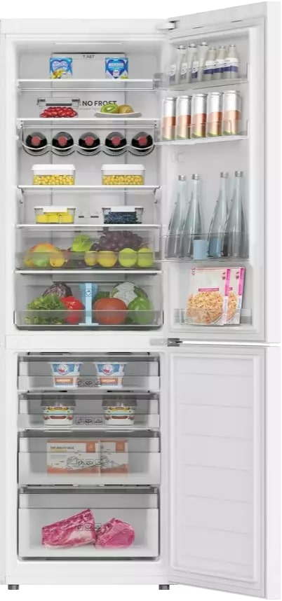 No Frost (Total No Frost, Frost Free): вентилятор обеспечивает циркуляцию охлажденного воздуха, благодаря чему лед не нарастает на стенке, а концентрируется только на скрытом внутри холодильника испарителе. Талая вода собирается в специальной емкости и испаряется. Такой холодильник не нужно размораживать – это экономит время и позволяет не останавливать прибор. Благодаря этим плюсам в современных моделях No Frost – самая распространенная система.