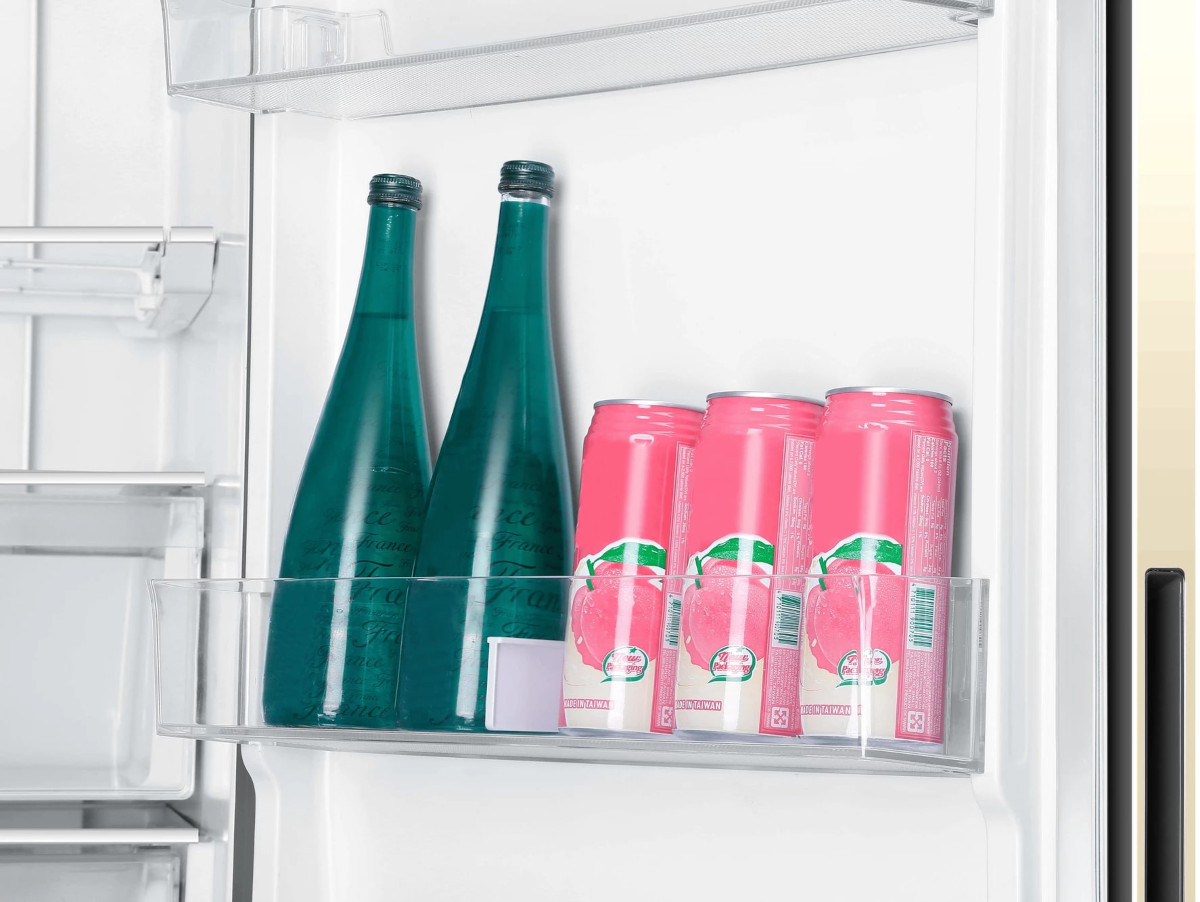 Отдельного упоминания заслуживают холодильники итальянской фирмы Smeg в ретро-стиле пятидесятых годов в округлом корпусе с выпуклой дверью. Для придания неповторимого внешнего вида фасад у них выполняется из прочного монолитного формованного термопластика.