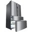 Холодильники с так называемой французской дверью или French Door также имеют распашные двери, но за ними находится не две, а одна камера. Эти двери занимают не всю высоту холодильника, а только ее часть. В нижней части подобных холодильников могут находиться либо еще две распашные двери, либо выдвижные морозильные ящики.
