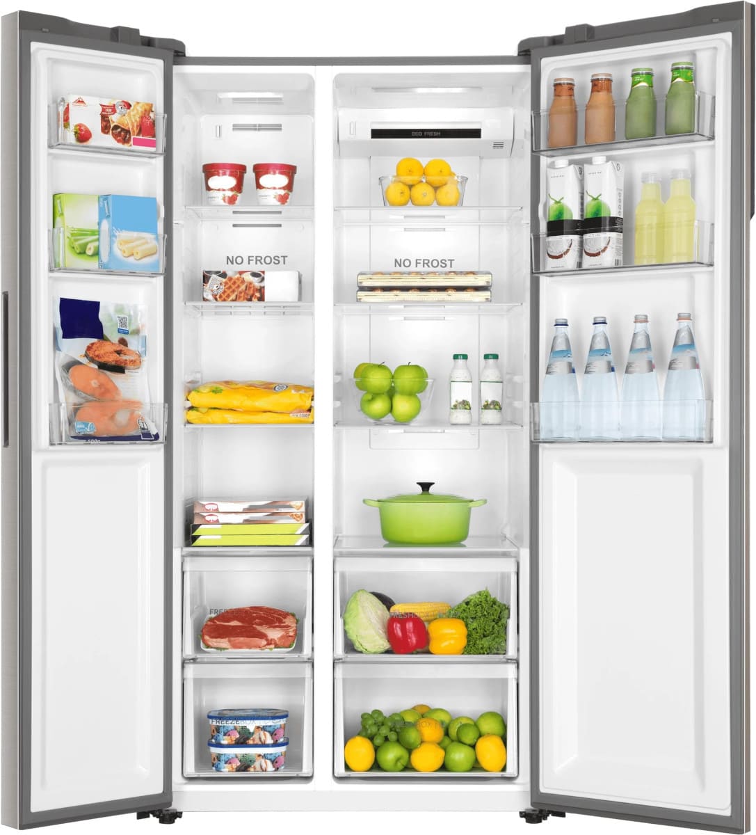 Холодильники Side-by-Side, что в переводе означает «бок-о-бок», — вместительные устройства, в которых холодильная и морозильная камеры располагаются рядом друг с другом. Они предназначаются для хранения значительного запаса продуктов и иногда называются холодильниками с американским типом компоновки, поскольку такие приборы с распашными дверями появились именно в США.