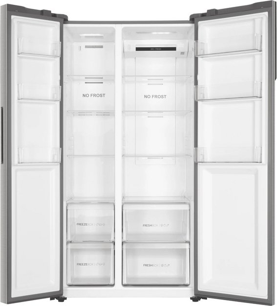 В числе подобных устройств имеются как отдельностоящие, так и встраиваемые модели: в любом случае они требуют много места для установки и могут быть размещены в просторном помещении. Преимуществом подобных устройств является прежде всего их вместительность, отличный обзор обеих камер, удобство использования, два контура охлаждения и возможность точной раздельной регулировки температуры. Кроме того, модели Side-by-Side преимущественно относятся к премиум-классу — имеют стильный внешний вид и большой набор дополнительных возможностей. Система размораживания подобных устройств — No Frost или капельная, — позволяет свести уход за прибором к минимуму.