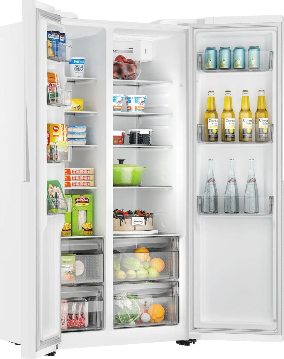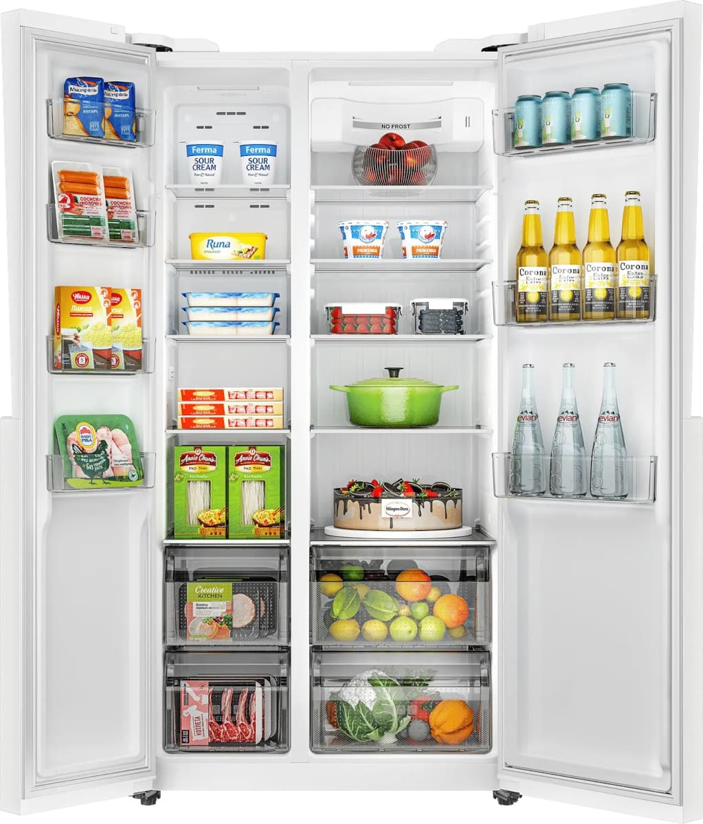 Холодильники Side-by-Side, что в переводе означает «бок-о-бок», — вместительные устройства, в которых холодильная и морозильная камеры располагаются рядом друг с другом. Они предназначаются для хранения значительного запаса продуктов и иногда называются холодильниками с американским типом компоновки, поскольку такие приборы с распашными дверями появились именно в США.