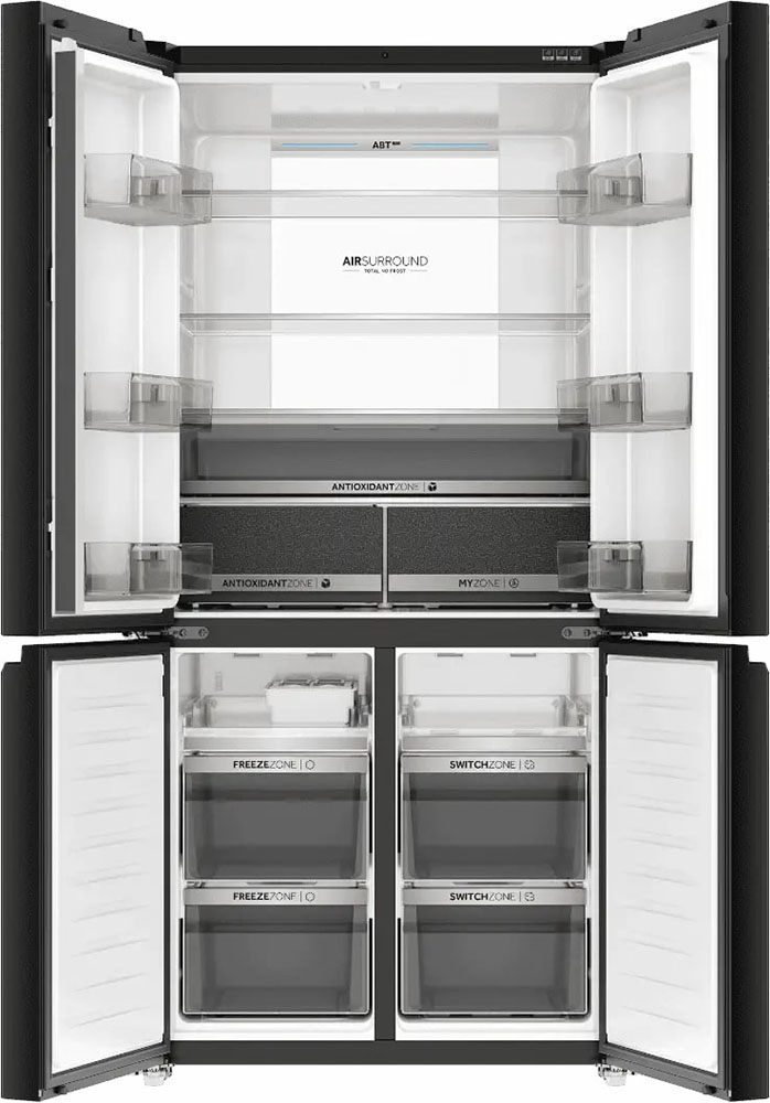 Четырех-, пяти- и шестикамерные модели включают, кроме морозильной и холодильной камер, отдельную зону свежести (иногда состоящую из сухого и влажного отсеков) и специальный отсек для ледогенератора, а в некоторых случаях еще и винное отделение.