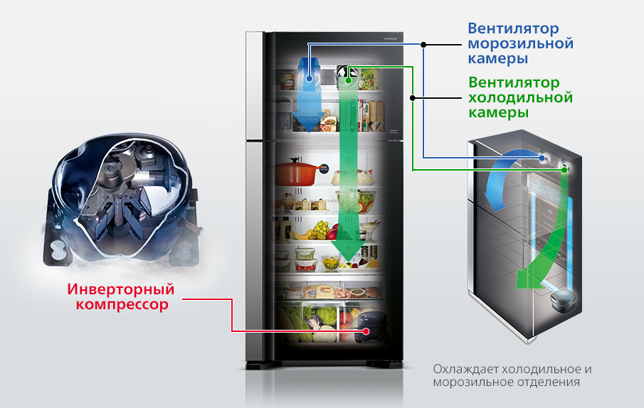 Такое раздельное охлаждение позволяет эффективно понижать температуру во всех уголках холодильника и тратить меньше энергии на работу.