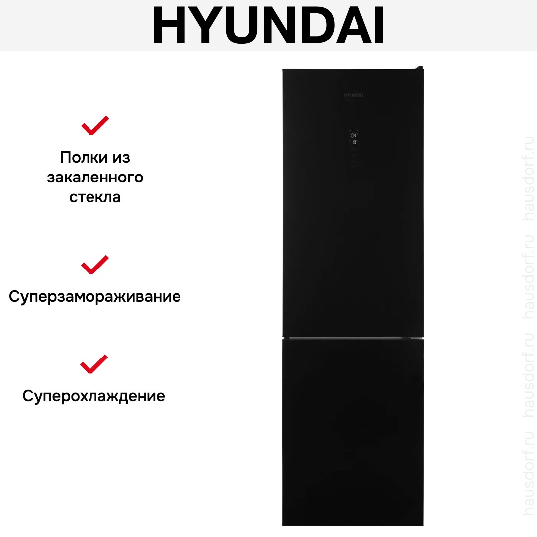 Холодильник Hyundai CC35083F черное стекло — замечательный выбор для всех, кто нуждается в надежном и современном приборе, чтобы обустроить кухню по последнему слову техники.