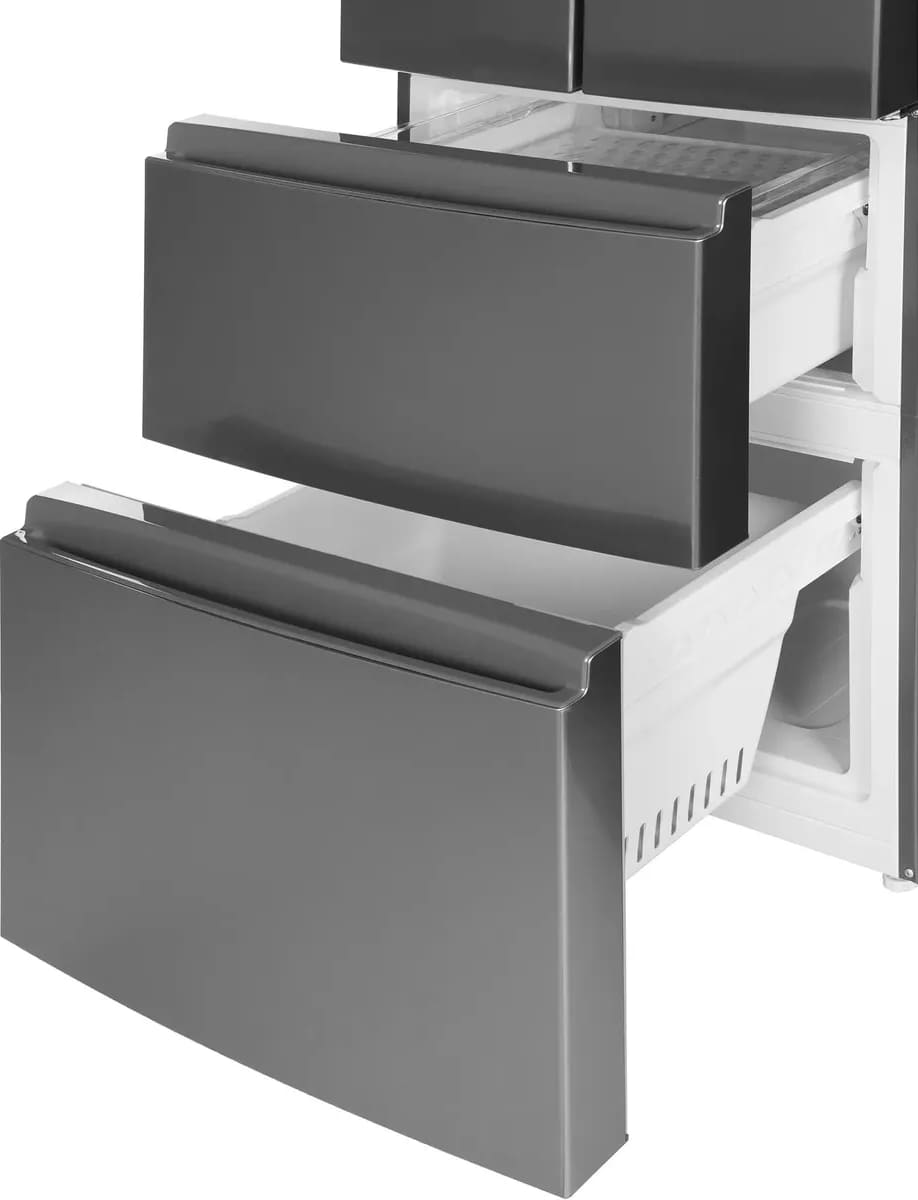 Трехкамерные модели выпускаются в нескольких вариантах. В некоторых случаях в качестве третьей камеры поступает так называемая зона свежести — отделение, где поддерживается температура около 0 градусов. В другом варианте подобные модели имеют морозильную камеру, состоящую из двух выдвижных ящиков.