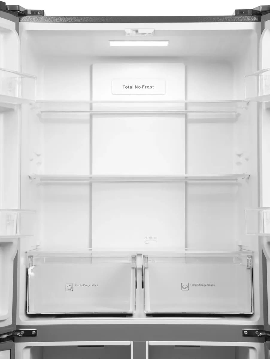 No Frost (Total No Frost, Frost Free): вентилятор обеспечивает циркуляцию охлажденного воздуха, благодаря чему лед не нарастает на стенке, а концентрируется только на скрытом внутри холодильника испарителе. Талая вода собирается в специальной емкости и испаряется. Такой холодильник не нужно размораживать – это экономит время и позволяет не останавливать прибор. Благодаря этим плюсам в современных моделях No Frost – самая распространенная система.