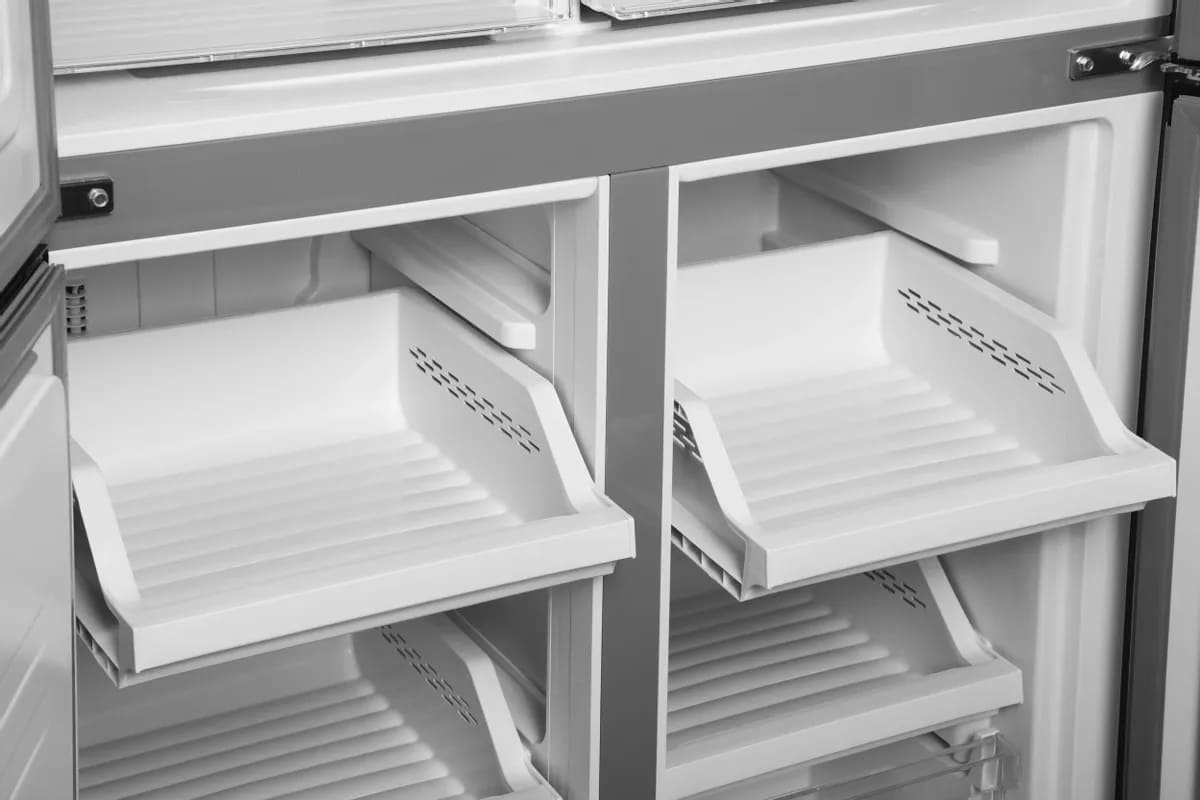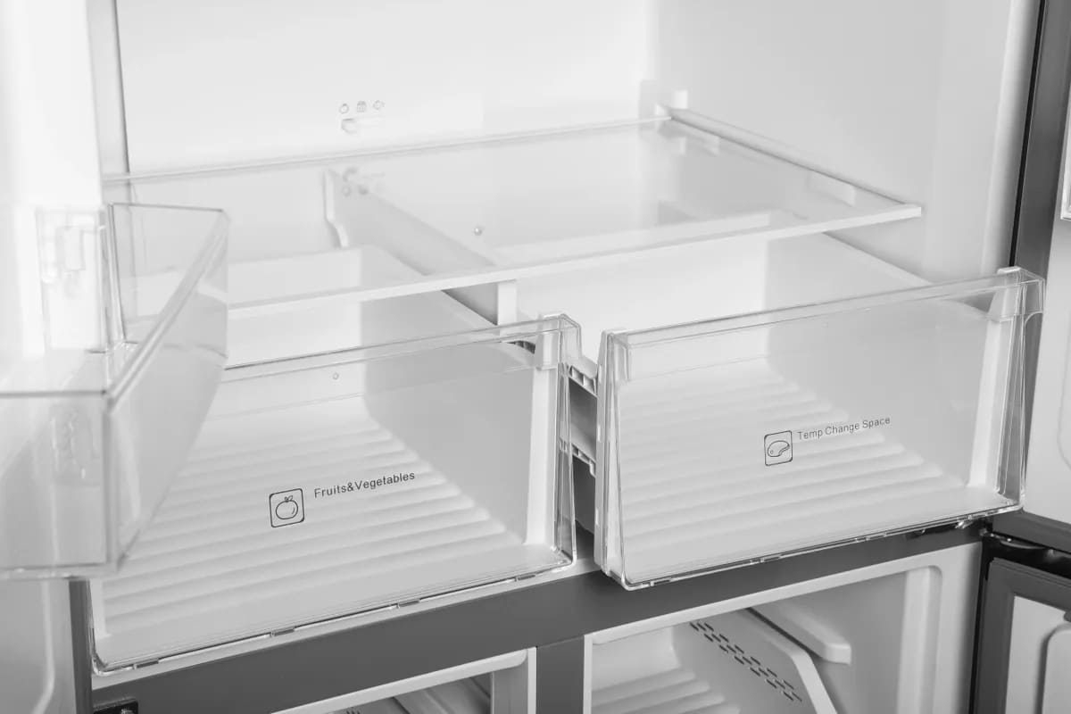 Трехкамерные модели выпускаются в нескольких вариантах. В некоторых случаях в качестве третьей камеры поступает так называемая зона свежести — отделение, где поддерживается температура около 0 градусов. В другом варианте подобные модели имеют морозильную камеру, состоящую из двух выдвижных ящиков.