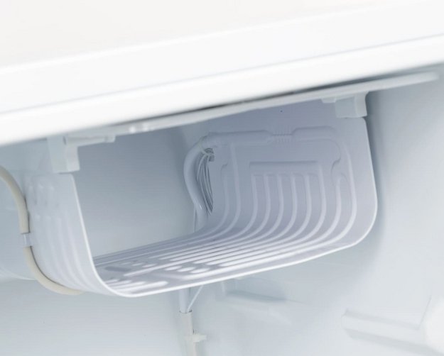 Капельное размораживание: при работе компрессора на задней стенке образуется лед; когда компрессор останавливается, льдинки тают, вода уходит в слив, а специальный испаритель удаляет ее.