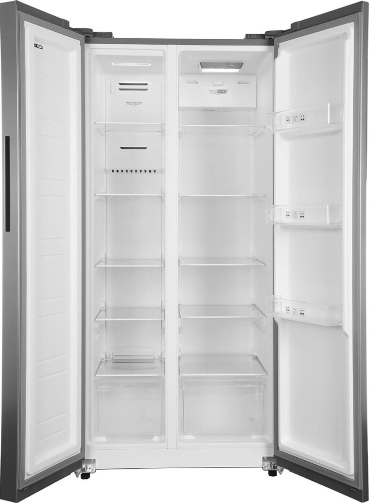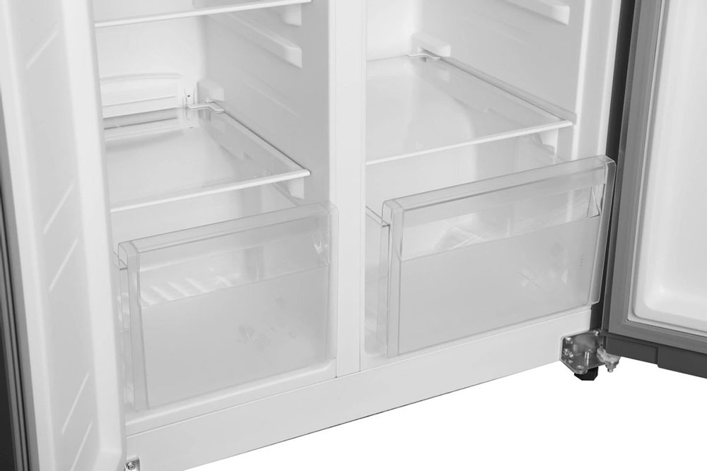 Данная модель — отдельностоящая, поэтому нужно тщательно подобрать место для ее размещения. Холодильник Side-by-Side с необычным расположением камер — сбоку друг от друга — позволяет увеличить объем продуктов для хранения. Такой вариант подходит обладателям просторной кухни, большим семьям, людям, которые запасают продукты и готовят впрок. Количество камер: 2.