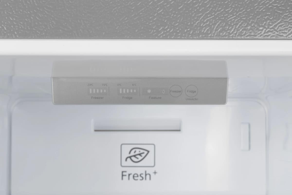 Гораздо точнее сориентироваться по индикаторам можно в холодильниках с электронной системой управления. Эти устройства обычно оснащены дисплеем, на котором высвечиваются значения фактической температуры в холодильной и морозильной камерах. Рядом с ними располагаются кнопки, во многих случаях сенсорные, при помощи которых можно регулировать температуру в каждой камере отдельно, и индикаторы включения этих камер. Здесь же, на панели инструментов, находятся индикаторы, указывающие на активацию дополнительных опций — например, режимов быстрого замораживания и быстрого охлаждения, отпускного режима, блокировки панели управления от детей.