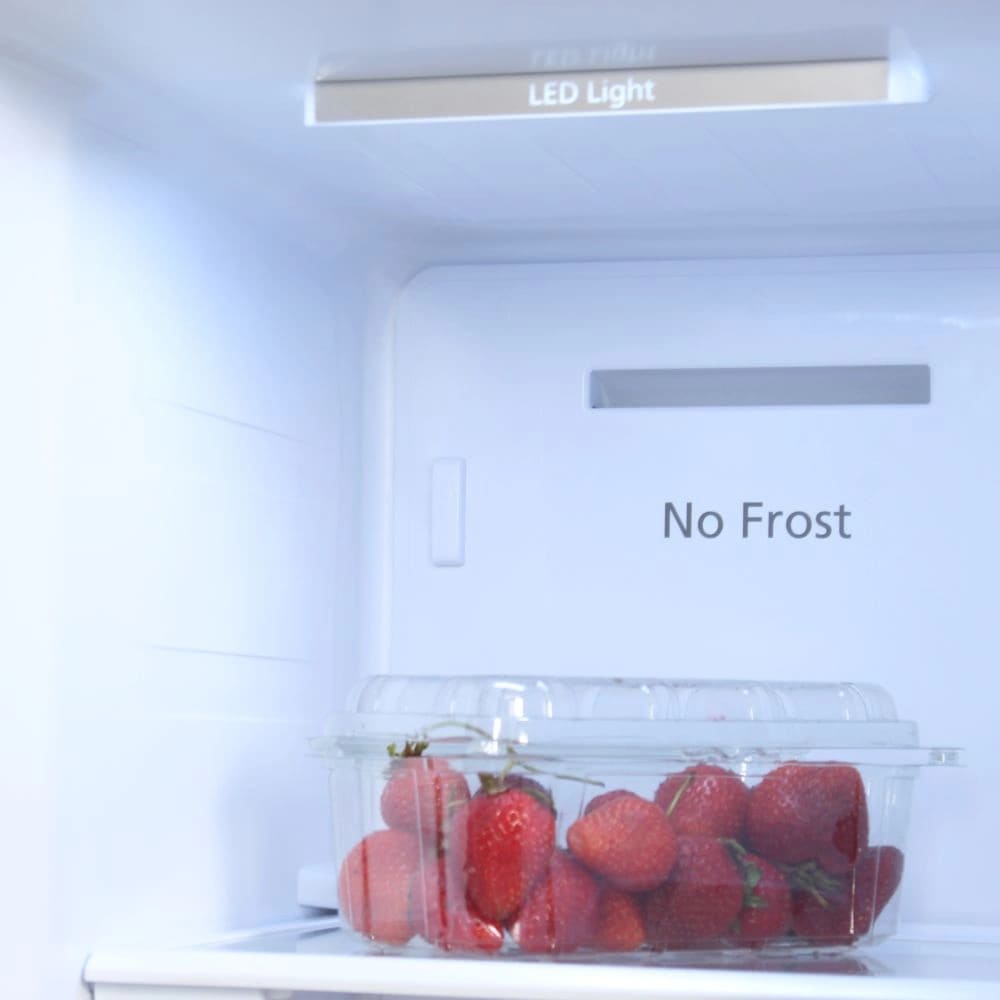 No Frost (Total No Frost, Frost Free): вентилятор обеспечивает циркуляцию охлажденного воздуха, благодаря чему лед не нарастает на стенке, а концентрируется только на скрытом внутри холодильника испарителе. Талая вода собирается в специальной емкости и испаряется. Такой холодильник не нужно размораживать – это экономит время и позволяет не останавливать прибор. Благодаря этим плюсам в современных моделях No Frost – самая распространенная система.