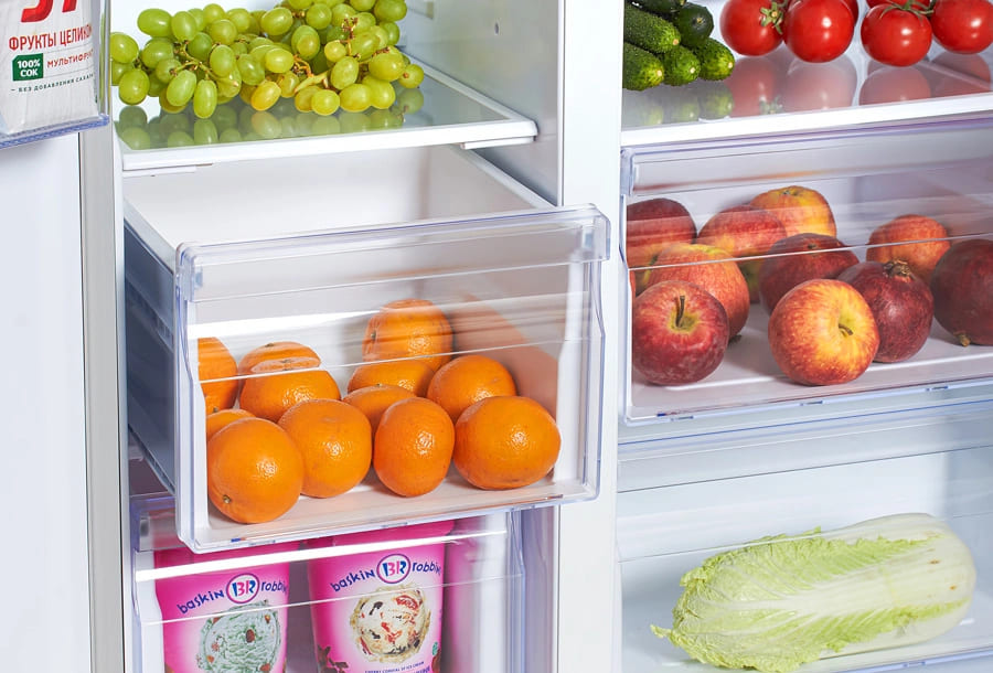 Ящики для овощей и фруктов можно найти в любой холодильной камере, какого размера ни был бы ваш холодильник — от большого устройства Side-by-Side до стандартной двухкамерной модели. В простейшем варианте они представляют собой обычные выдвижные ящики из пластика в нижней части камеры.
