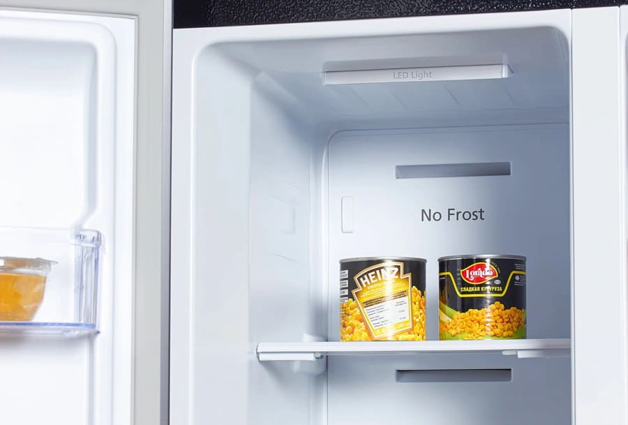No Frost (Total No Frost, Frost Free): вентилятор обеспечивает циркуляцию охлажденного воздуха, благодаря чему лед не нарастает на стенке, а концентрируется только на скрытом внутри холодильника испарителе. Талая вода собирается в специальной емкости и испаряется. Такой холодильник не нужно размораживать – это экономит время и позволяет не останавливать прибор. Благодаря этим плюсам в современных моделях No Frost – самая распространенная система.