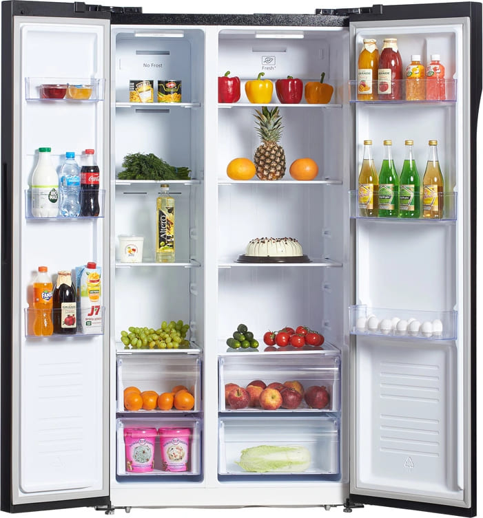 Холодильники Side-by-Side, что в переводе означает «бок-о-бок», — вместительные устройства, в которых холодильная и морозильная камеры располагаются рядом друг с другом. Они предназначаются для хранения значительного запаса продуктов и иногда называются холодильниками с американским типом компоновки, поскольку такие приборы с распашными дверями появились именно в США.