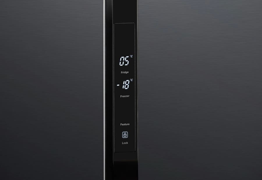 Гораздо точнее сориентироваться по индикаторам можно в холодильниках с электронной системой управления. Эти устройства обычно оснащены дисплеем, на котором высвечиваются значения фактической температуры в холодильной и морозильной камерах. Рядом с ними располагаются кнопки, во многих случаях сенсорные, при помощи которых можно регулировать температуру в каждой камере отдельно, и индикаторы включения этих камер. Здесь же, на панели инструментов, находятся индикаторы, указывающие на активацию дополнительных опций — например, режимов быстрого замораживания и быстрого охлаждения, отпускного режима, блокировки панели управления от детей.
