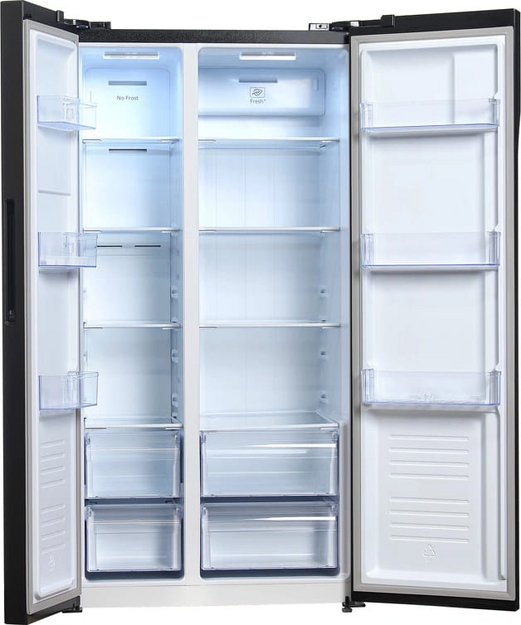 Данная модель — отдельностоящая, поэтому нужно тщательно подобрать место для ее размещения. Холодильник Side-by-Side с необычным расположением камер — сбоку друг от друга — позволяет увеличить объем продуктов для хранения. Такой вариант подходит обладателям просторной кухни, большим семьям, людям, которые запасают продукты и готовят впрок. Количество камер: 2.