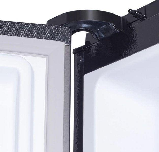 Холодильники с так называемой французской дверью или French Door также имеют распашные двери, но за ними находится не две, а одна камера. Эти двери занимают не всю высоту холодильника, а только ее часть. В нижней части подобных холодильников могут находиться либо еще две распашные двери, либо выдвижные морозильные ящики.