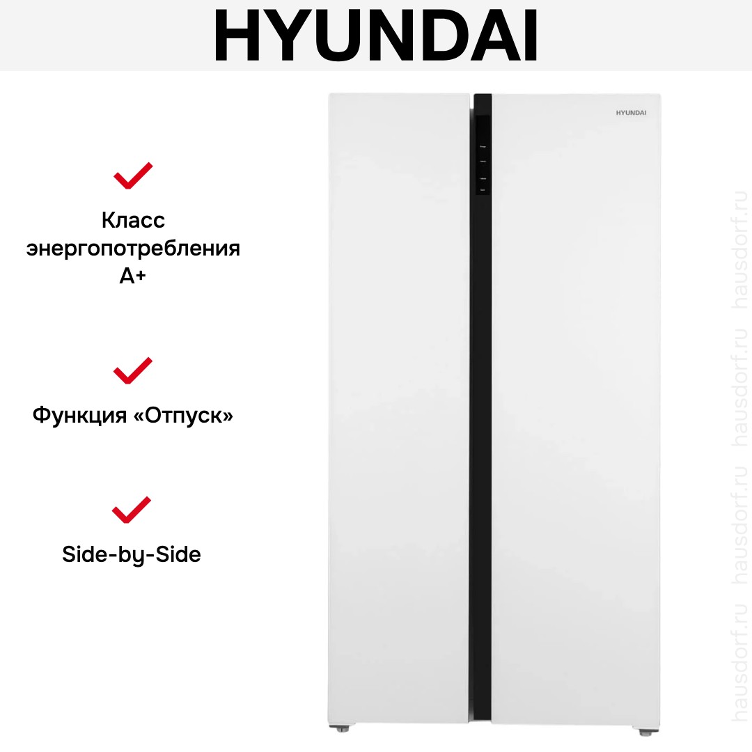 Холодильник Hyundai CS5003F сочетает в себе элегантный минимализм и продуманный функционал, готовый стать центром вашей кухни. Его белый стеклянный фронт смотрится стильно и легко очищается, а скрытая ручка поддерживает ровную, лаконичную линию фасада. При габаритах 178×91,1×63,6 см и общем объёме 537 литров прибор занимает достойное место, не перегружая интерьер благодаря тонкой глубине и аккуратному дизайну.